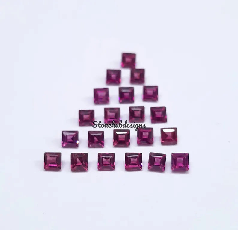 2x2MM, 2.5x2.5MM Natural Rhodolite Garnet Faceted Square Cut Gemstone, AAA Pink Rhodolite faceted Square Loose Calibrated Stone for jewelry