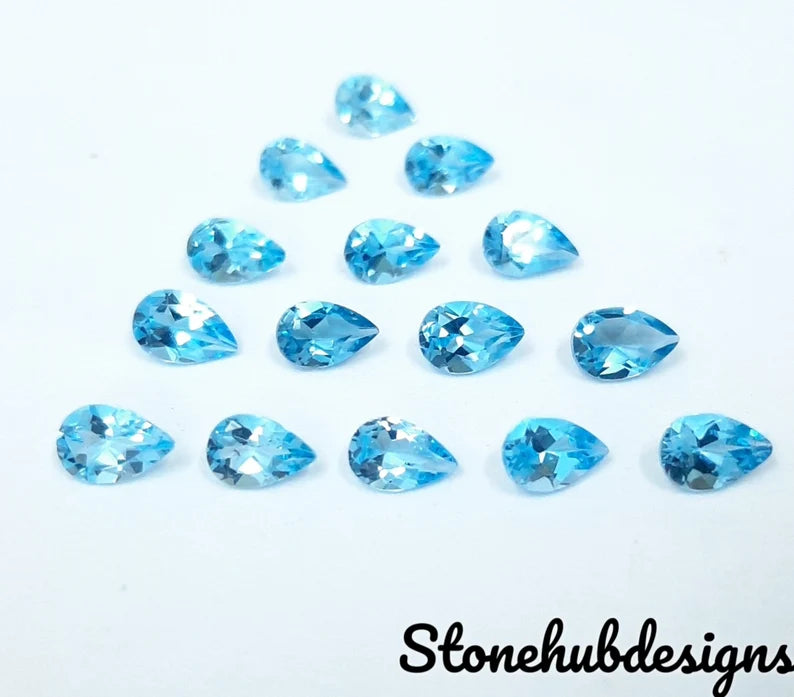 2x3MM, 3x4MM, 3x5MM Natural Swiss Blue Topaz Faceted Pear Cut Gemstone, AAA Swiss blue topaz pear faceted loose Calibrated Stone For Jewelry