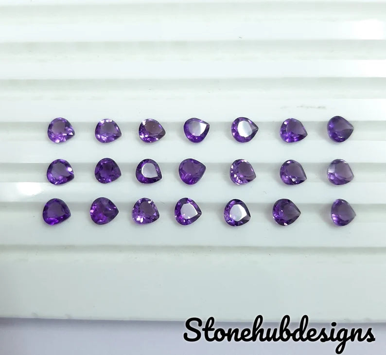 3MM, 4MM, 5MM Natural Amethyst Faceted Heart Shape Cut Gemstone, AAA African Amethyst faceted Heart Cut loose gemstones For Jewelry