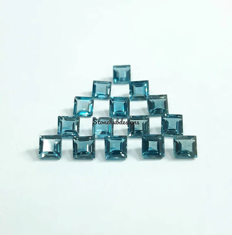 4MM, 5MM, 6MM Natural London Blue Topaz Faceted Square cut Gemstone, AAA London Topaz faceted Square Calibrated Size for Jewelry
