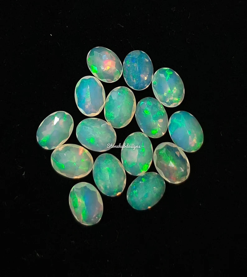 5x7MM, 6x8MM, 7x9MM Natural Ethiopian Opal Faceted Oval Cut Gemstone, AAA Ethiopian Opal multi flash oval cut Calibrated Size loose gemstone
