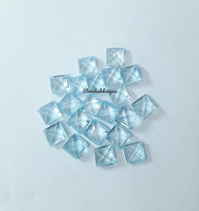6MM, 7MM, 8MM Natural Sky Blue Topaz Faceted Square Gemstone, AAA Quality Sky Blue Topaz faceted Square Cut for jewelry
