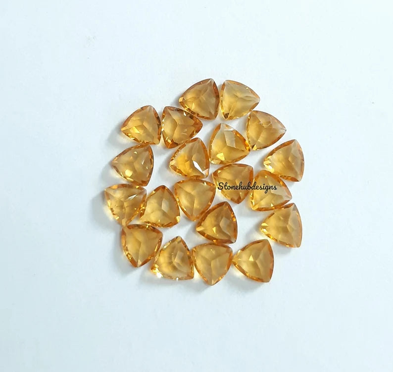 3MM, 4MM, 5MM Natural Citrine Faceted Trillion Cut Loose Gemstone, AAA Yellow Citrine Faceted Trillion Calibrated Loose Gemstone for Jewelry