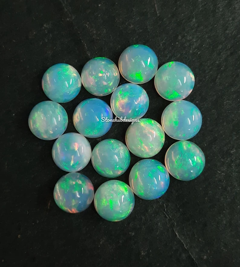 Natural Ethiopian Opal Round Cabochon Gemstone, AAA Multi Flash Ethiopian Opal Smooth Round flat back Cabochon stone For Jewelry